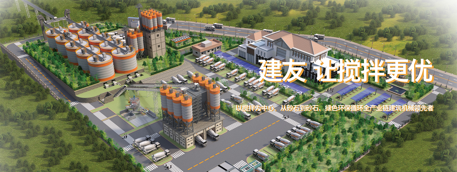 山推建友機械股份有限公司主營混凝土攪拌站、瀝青攪拌站、穩定土拌合站、干混砂漿站、制砂站、破碎線、混凝土攪拌運輸車、圾處理設備及拖泵、砂石分離機等各類攪拌機械。